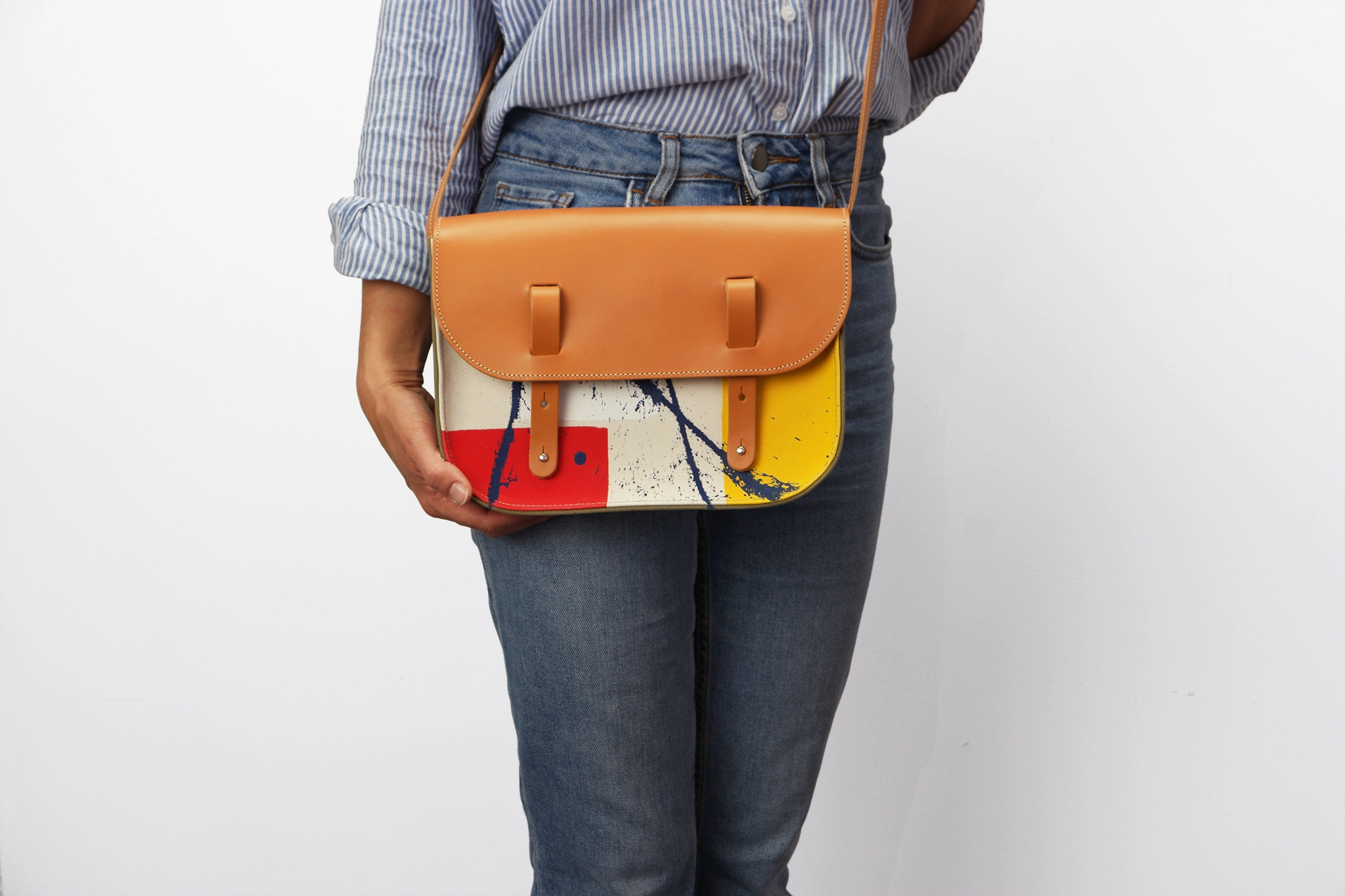La besace occupe une place de choix dans notre gamme d'éditions limitées. Ce format intemporel se prête parfaitement aux créations peintes à la main, offrant une surface idéale pour des motifs graphiques contemporains. Sa silhouette élégante sublimée par l'art manuel français en fait une pièce de caractère unique.