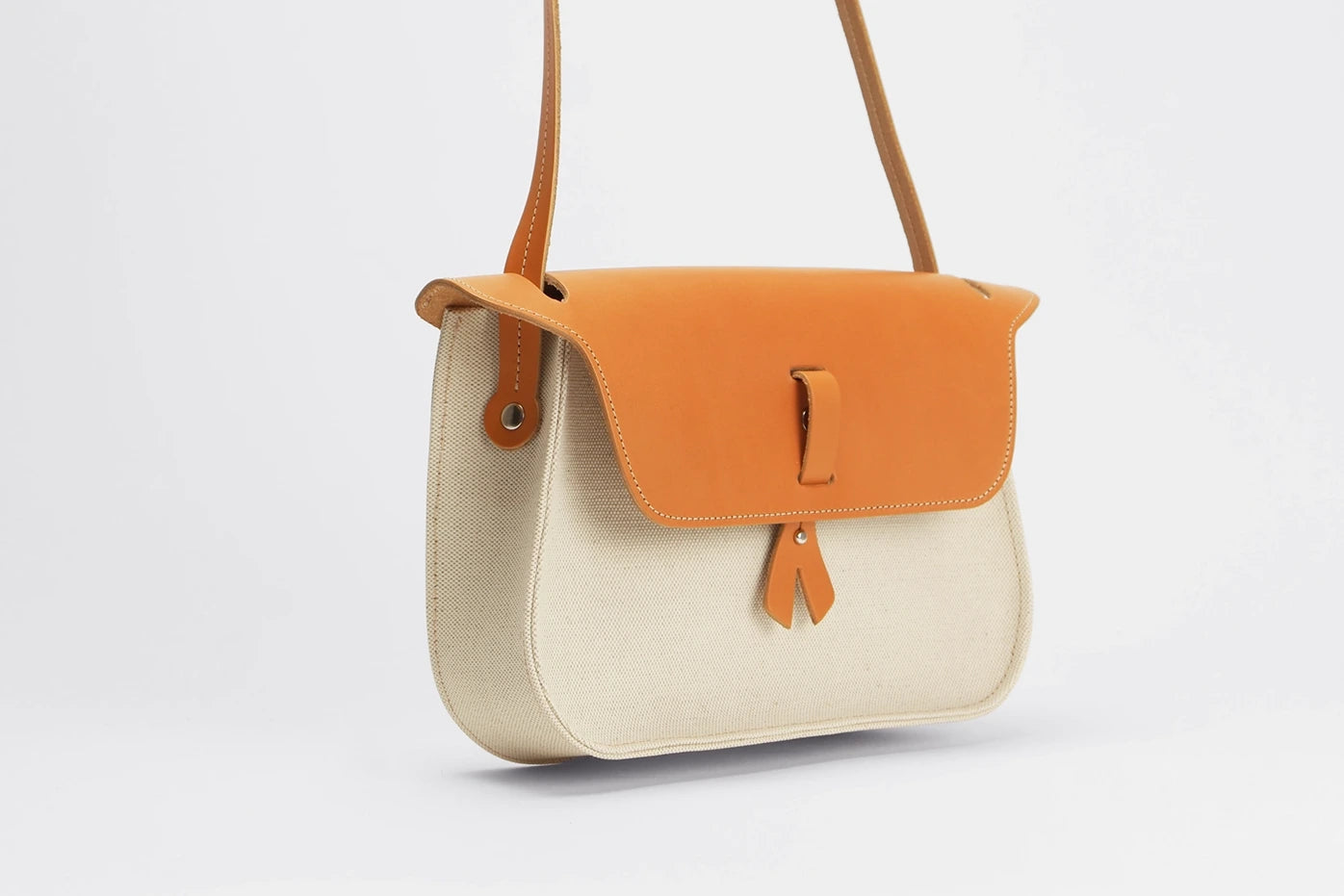 Pièce emblématique de la collection Monébari, Le "27" incarne l'élégance minimaliste à la française. Sa silhouette épurée marie harmonieusement la toile de lin et de coton avec des finitions en cuir soigneusement sélectionnées.