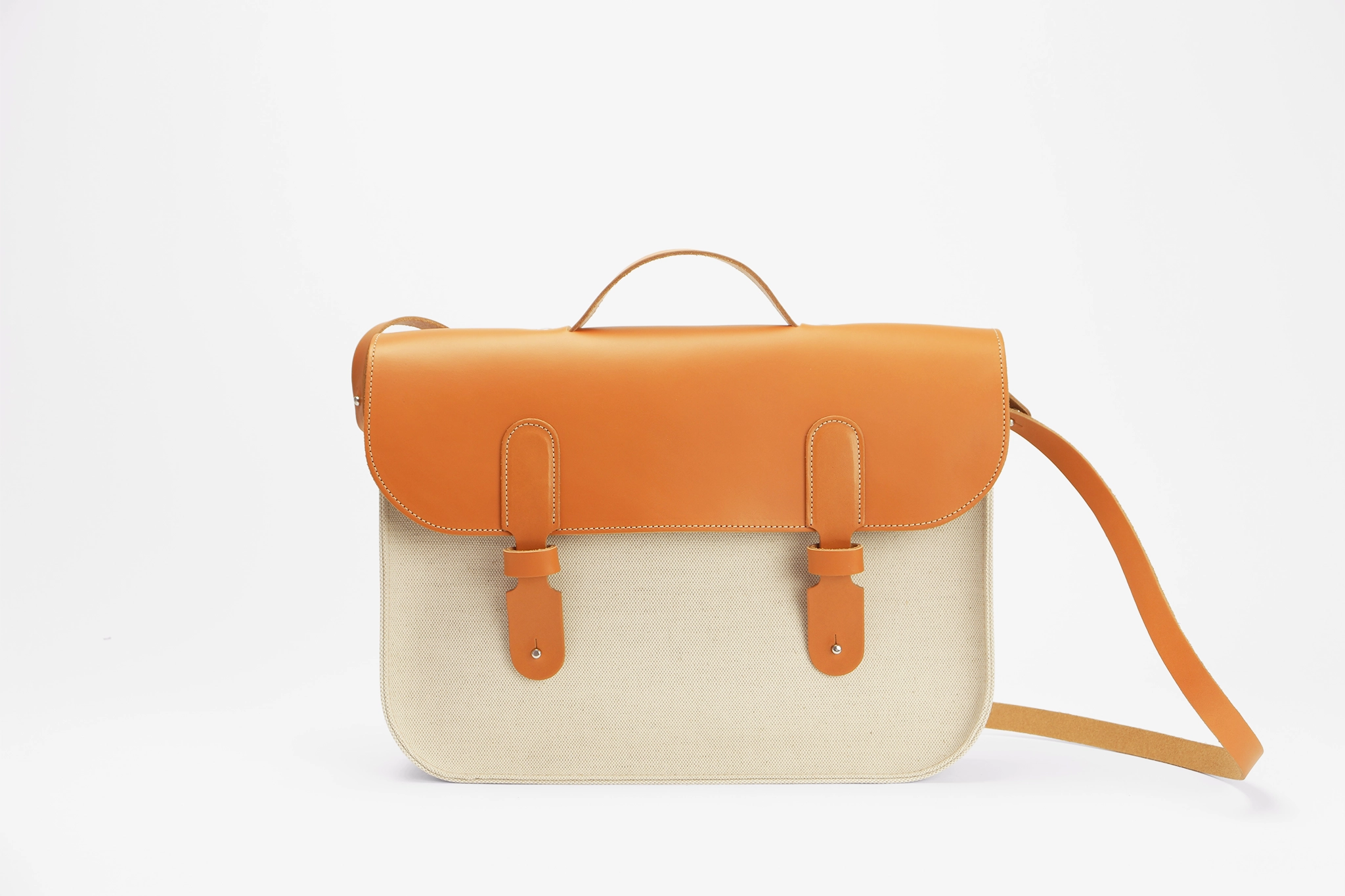 Sac à bandoulière en toile et cuir -Le 27- orange