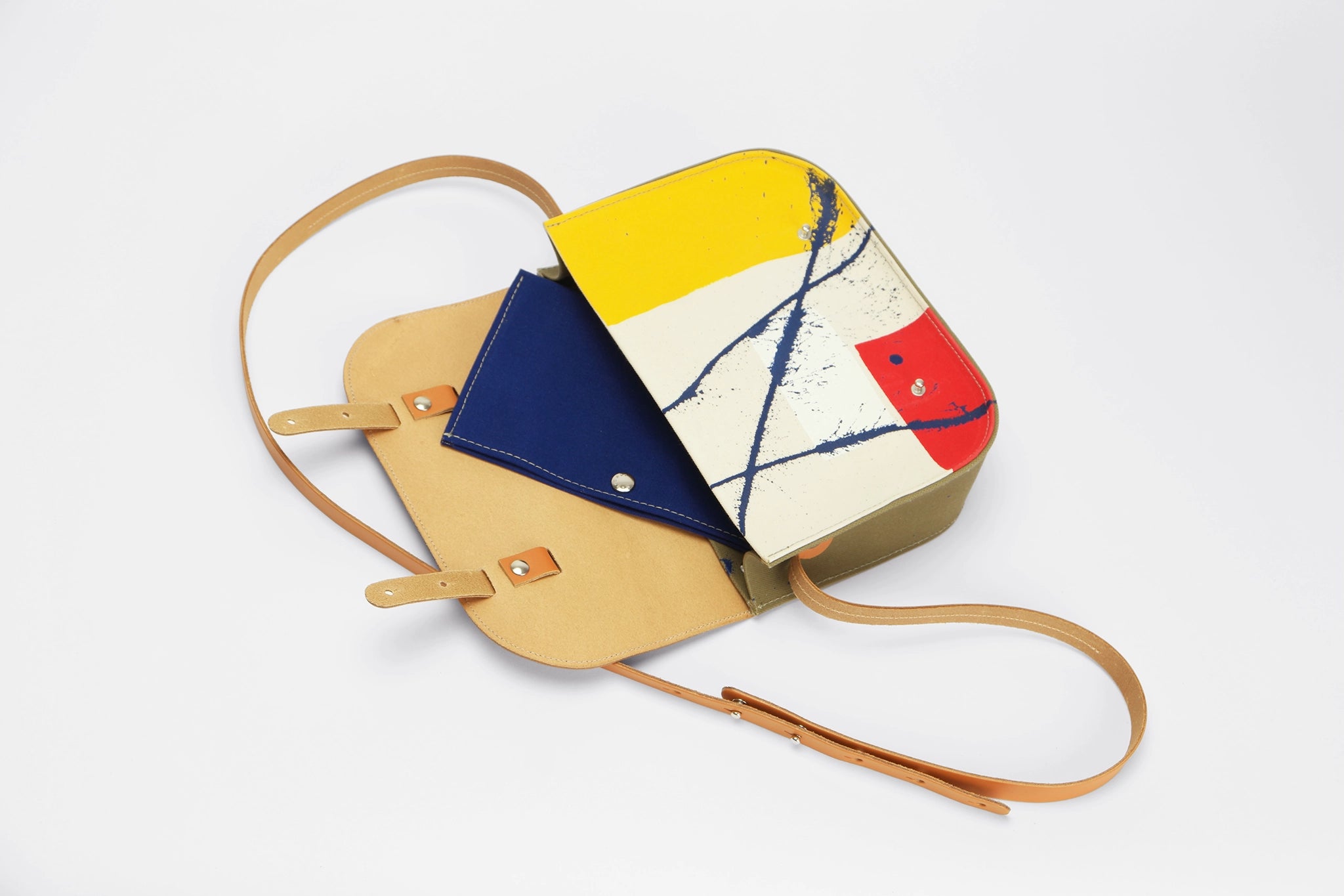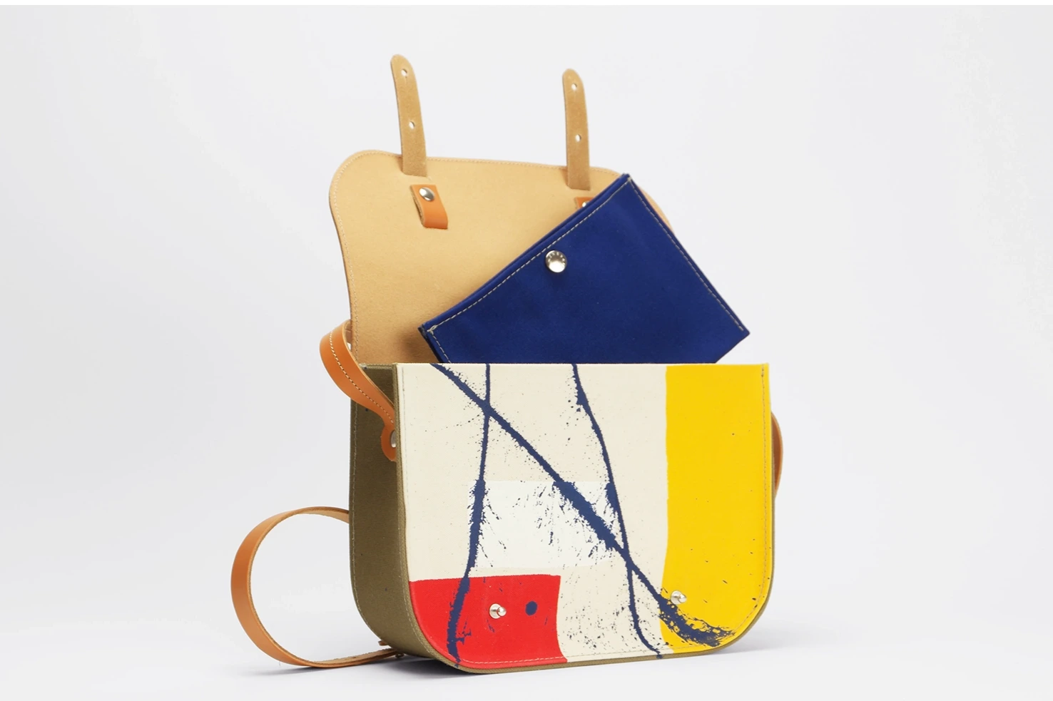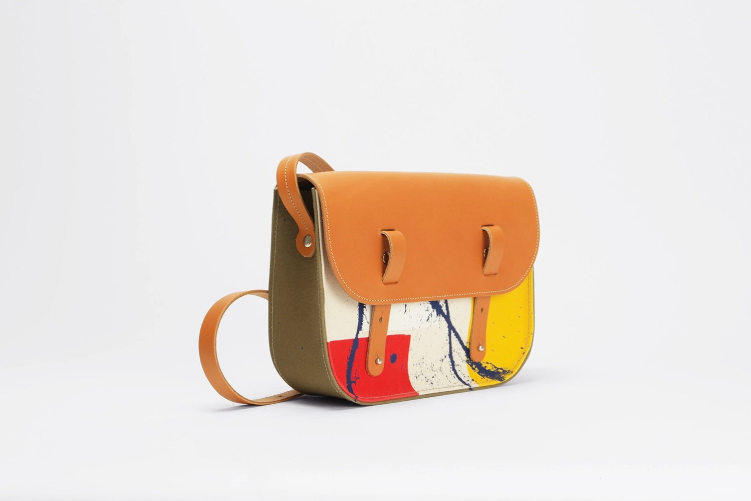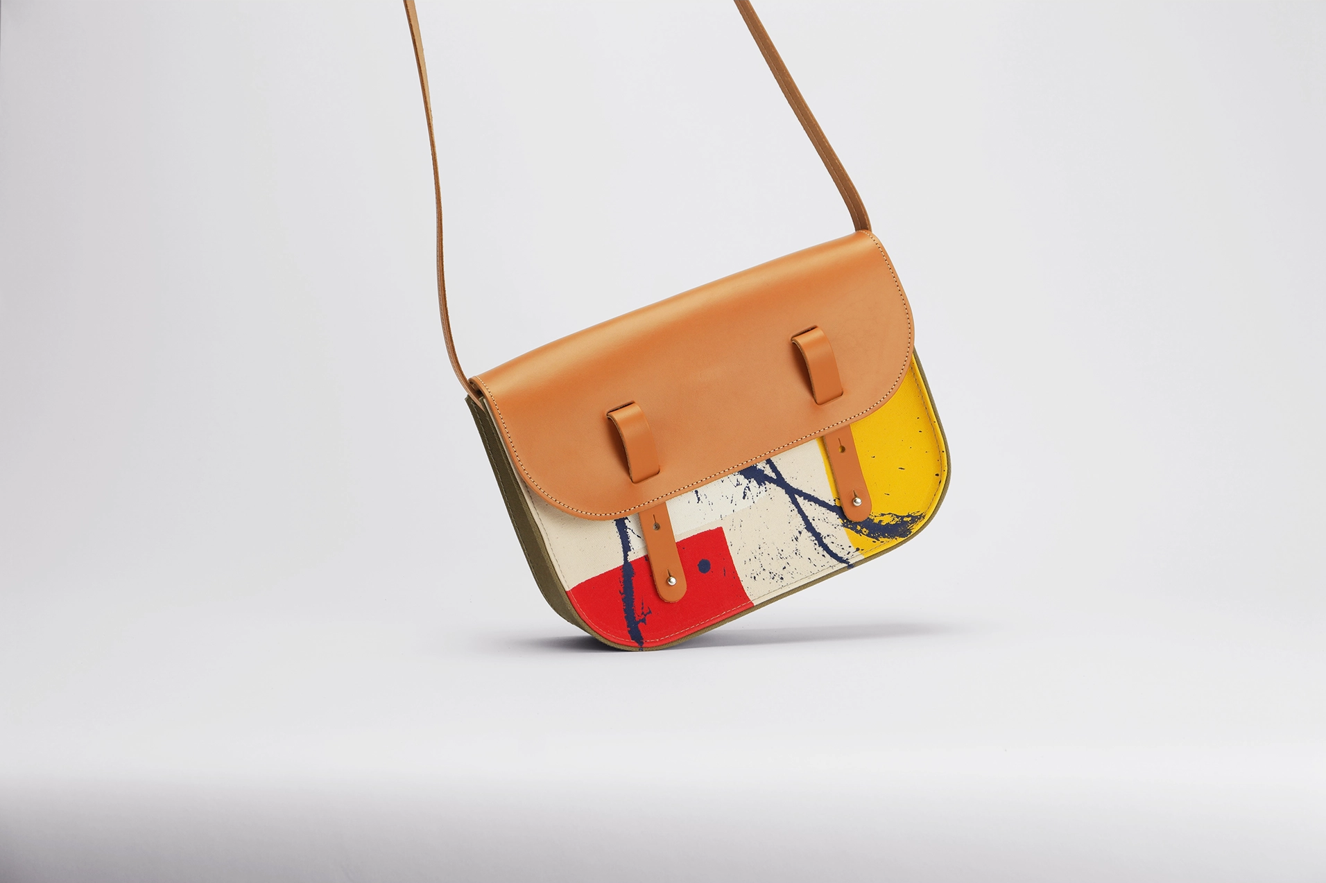 Small canvas and leather satchel - Les Traits Bleus Edition
