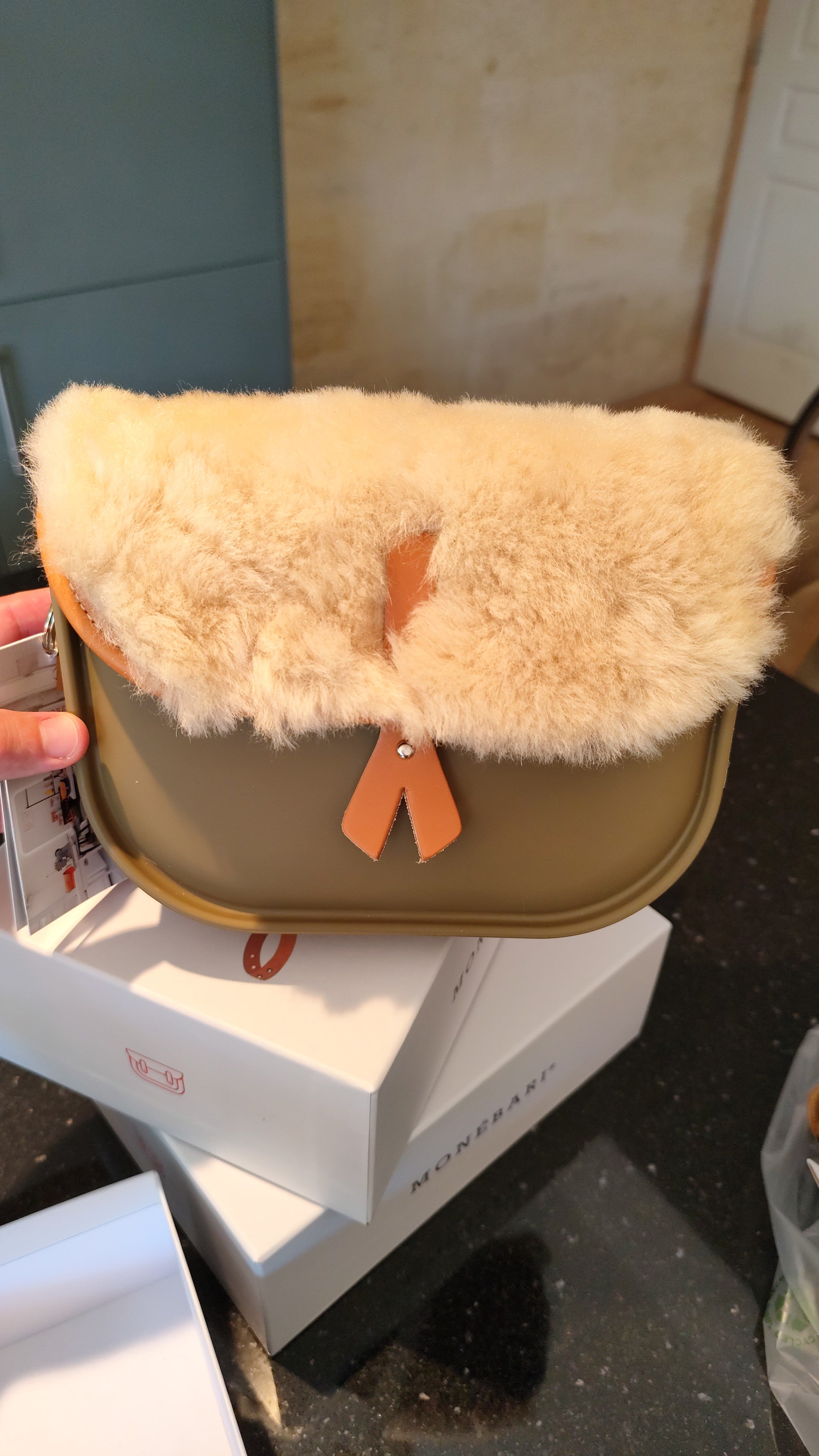 Le sac à bandoulière édition Moumoute marie avec audace la douceur de la laine au style contemporain.