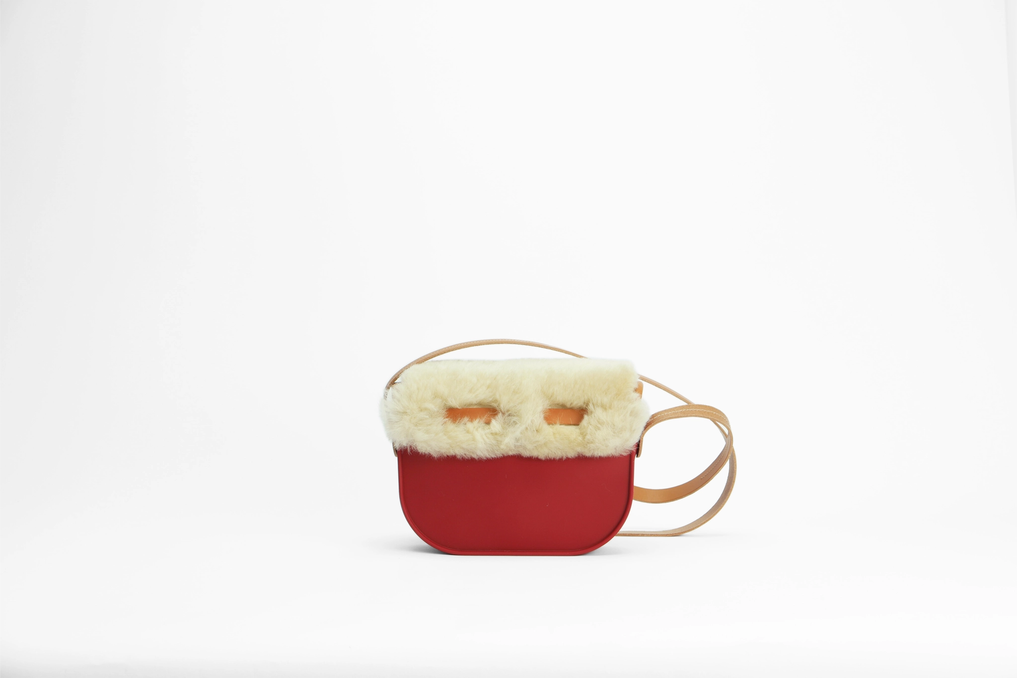 Sac à bandoulière - en gomme et cuir - Édition laine - Rouge